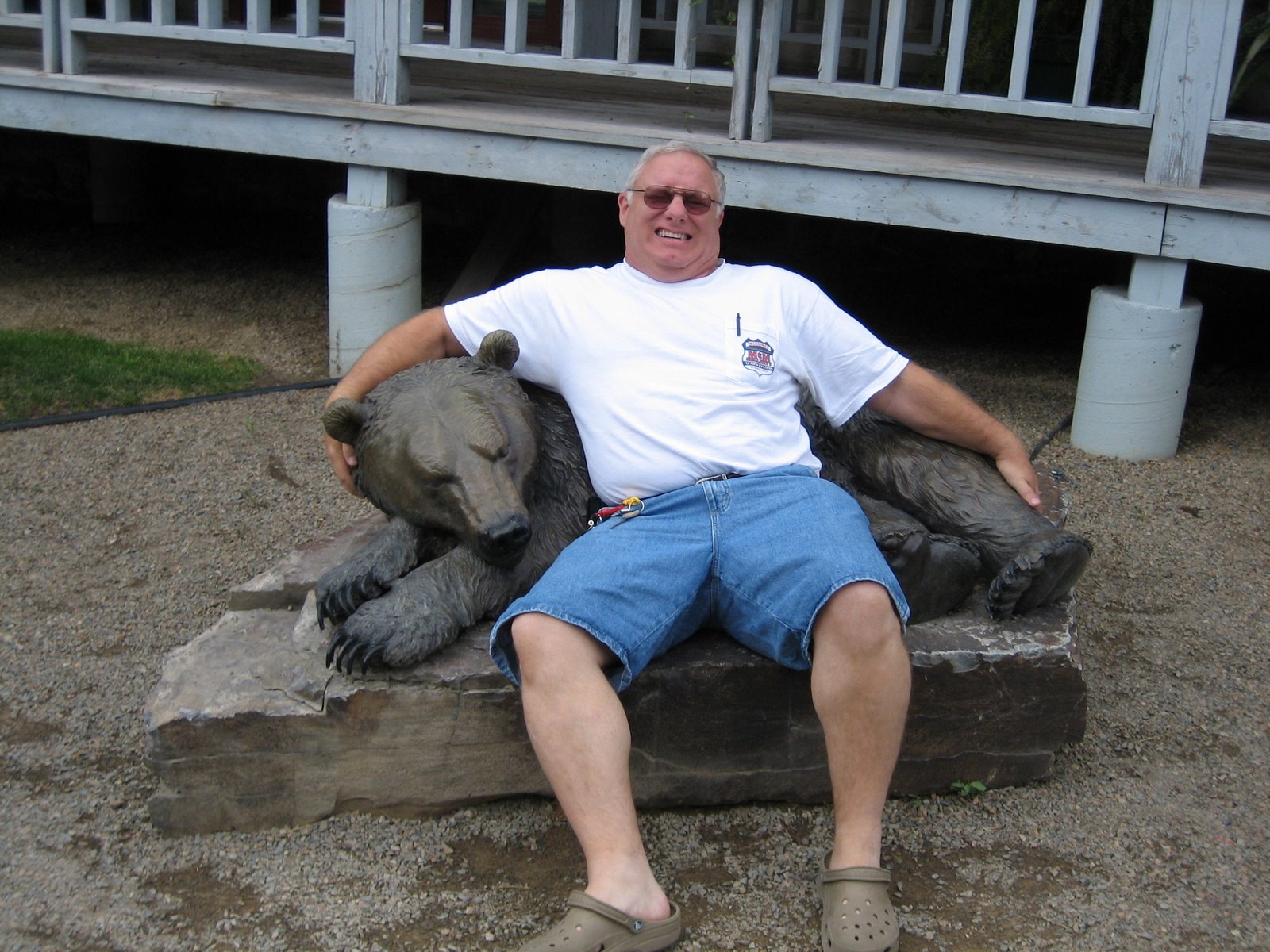 Me winning the annual Bigfork bear wrestling championship. OK, it is a statue. That’s as close as I’ll get to wrestling one of these things.