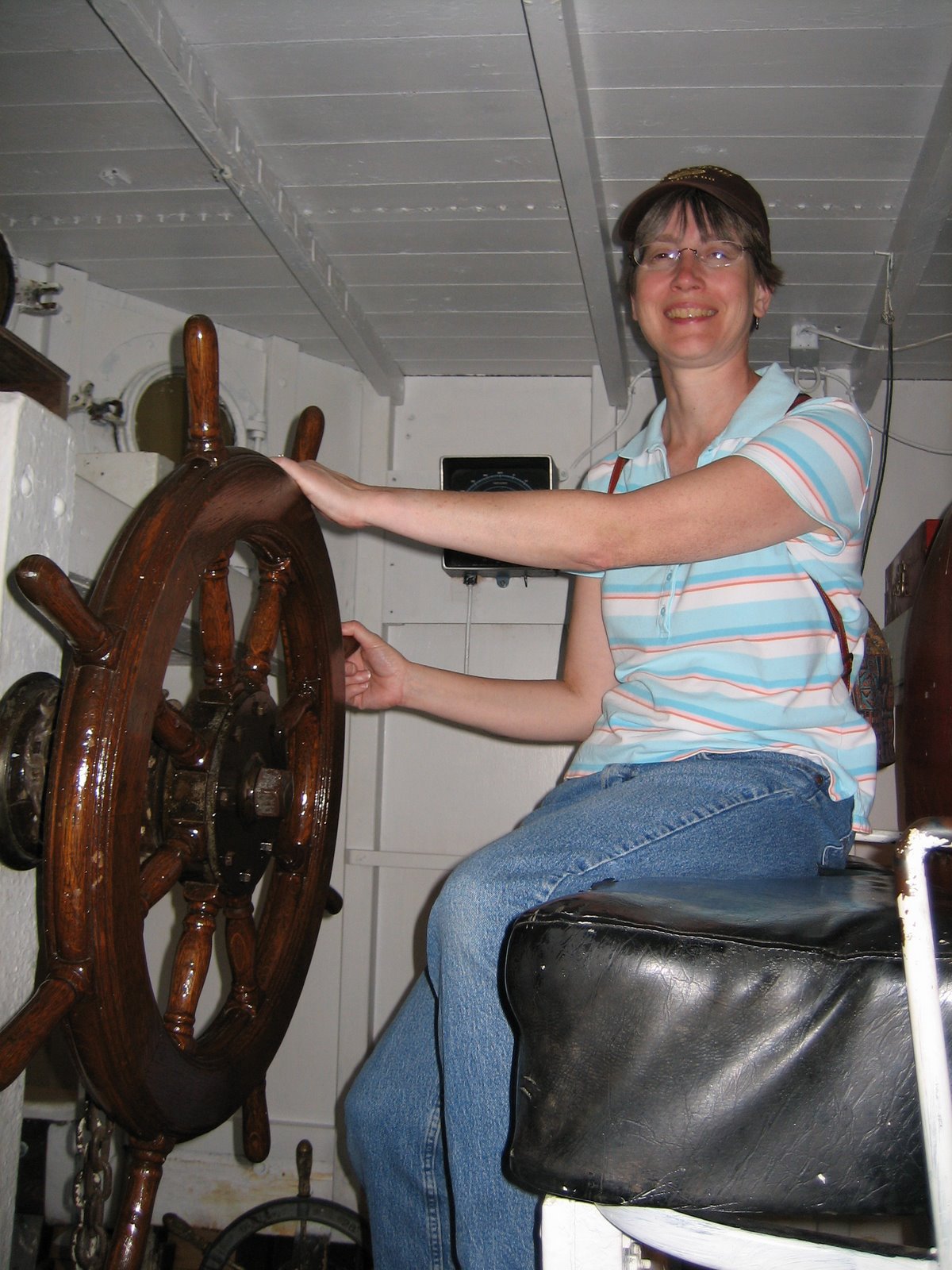 I talked to my mom on the phone and told her we were in Door County. She said their friends, Jack and Annette always wanted them to come here but they never made the trip. It really is a beautiful area. Some say it is like New England. The harbor areas sure remind us of the New England area. Yesterday we went to the Door County Maritime Museum. It was very interesting. Kim and I like museums. There are just lots of interesting facts. There was a motor there that weighed 800 pounds, put out 25 to 35 horsepower and once oil was pumped through the engine to lubricate it, the oil flowed to a bilge pump where it was pumped out into the lake. The oil only made one pass through the engine and then was expelled. It probably wouldn’t meet the 2008 emission codes. Another engine was discarded and used for a boat anchor. Years later when they pulled it from the water to restore it they found that it was still coated with so much oil and grease that it was easy to restore. They also had a fishing boat called “Hope”. It was made during the depression for $3,500.00 and was built to give men work, hence it gave some hope during a rather hopeless time. The 40’ boat was recessed into the floor of the museum so we could step right on the deck. It was interesting to be able to get right into the boat.