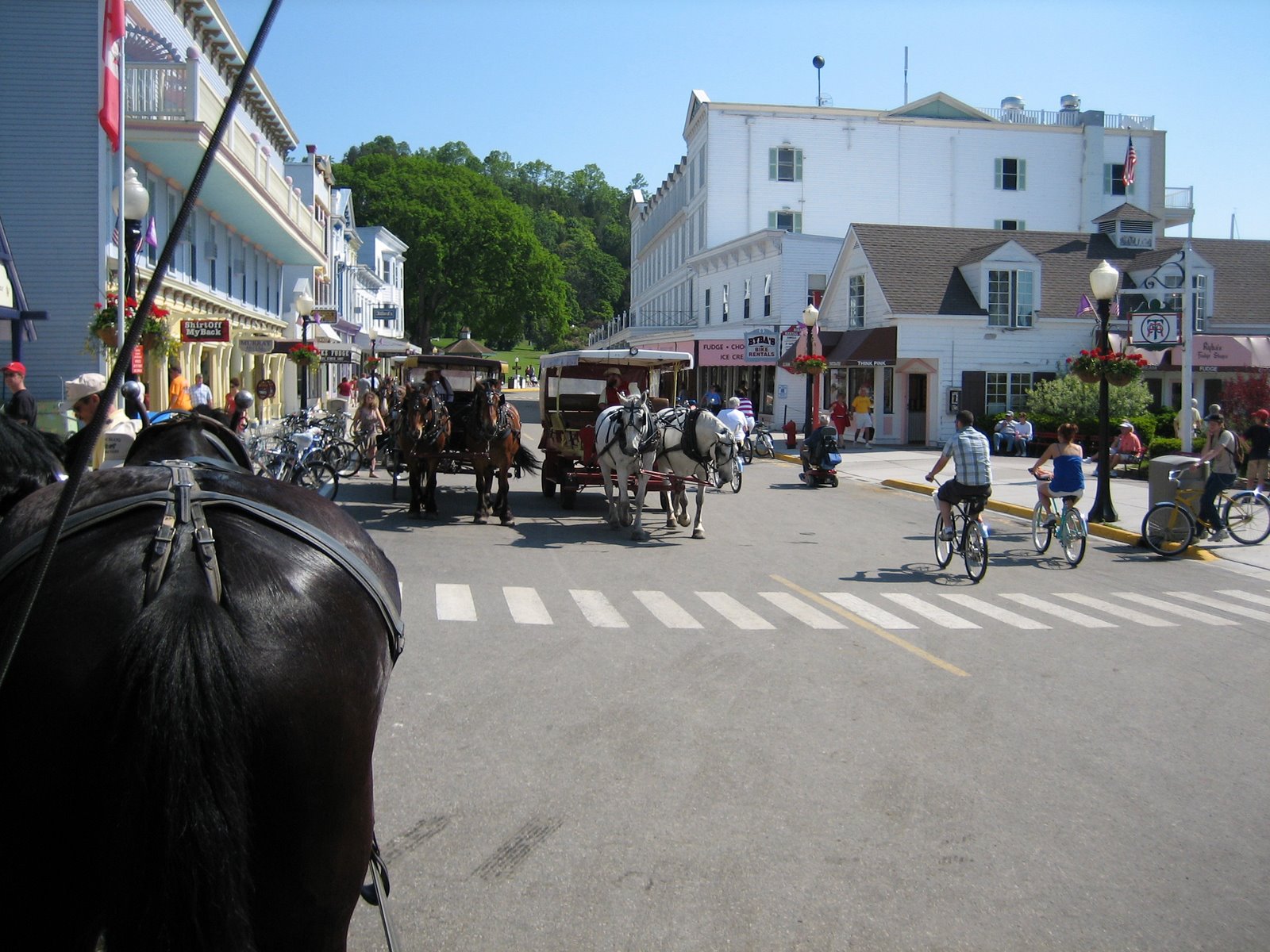 Parked at Matt & Kim’s – Downtown Mackinaw Island and us at the Grand Hotel.