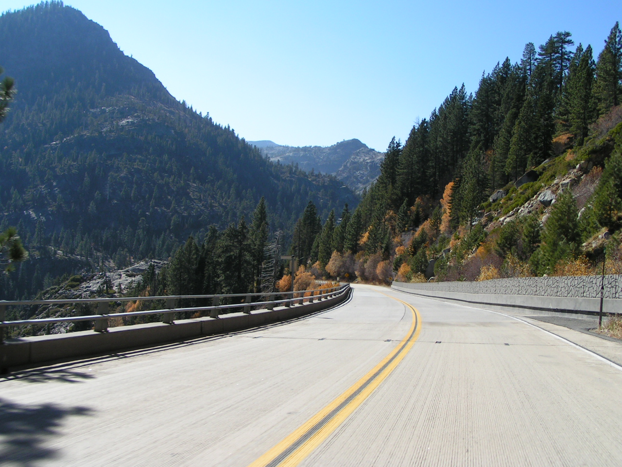 This ia a 10 MPH curve on highway 89 on the way to South Lake Tahoe. It was interesting with the motorhome and trailer but fun with the Miata.