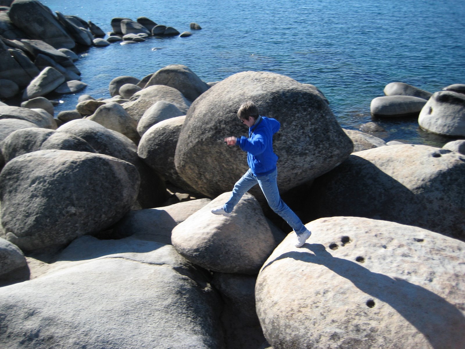 This is an Island at the south end of Lake Tahoe. In 1929 some crazy lady (with a whole bunch of money) had them build her a tea house on top of it. Look closely and you can see it.