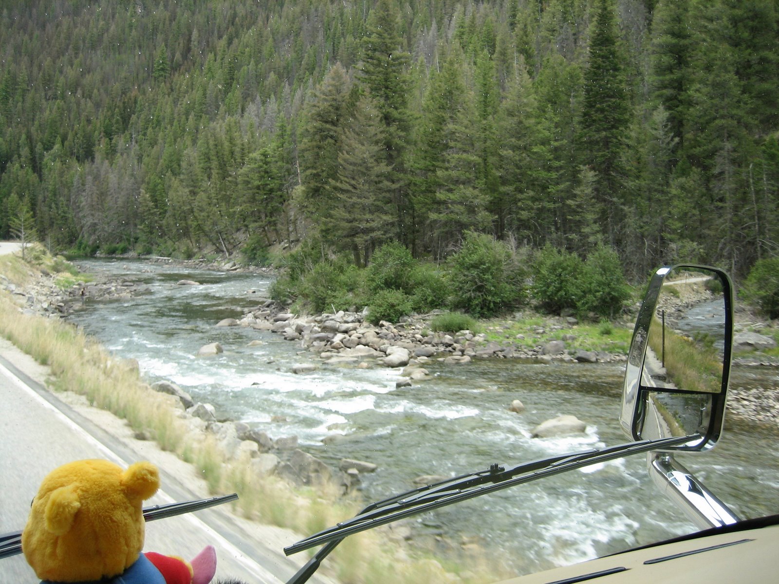 We spent two days traveling from Arco, ID to Hamilton, MT. The mountains were beautiful and pictures just don’t do them justice. Most of the drive we paralleled a beautiful river. I’ve never fished but it looks like a lot of fun and a great hobby. We crossed the 45th parallel which is halfway between the equator and the North Pole. We passed a creek named “Up the Creek Creek”. Here in Hamilton we met with Chuck and Mary Garber. Chuck built our home in Indiana 14 years ago. We went out to eat and had a great time. They have invited us to their home to eat tonight. We will be here three nights and then move on to Glacier National Park. We hope to spend some time there.